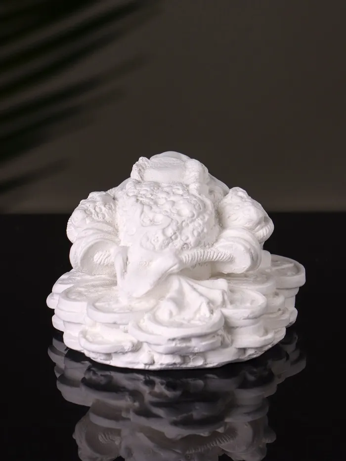 Белый матовый гипс с тонкой проработкой деталей не только красиво смотрится, но и прекрасно удерживает эфирное масло, постепенно раскрывая его аромат. Согласно фэн-шуй, такое изображение привлекает финансовый поток, делая аксессуар вдвойне ценным приобретением.