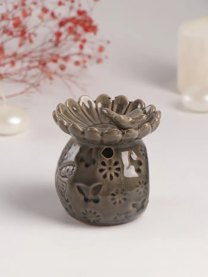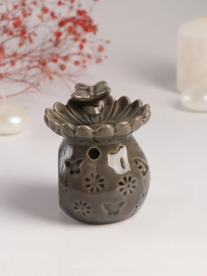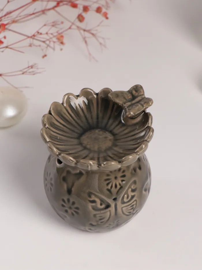 Позвольте себе окунуться в атмосферу природной гармонии и уюта с этой изысканной аромалампой, которая станет настоящим украшением вашего дома. Её дизайн, вдохновлённый лёгкостью бабочек и нежностью цветов, привносит в интерьер нотку романтики и спокойствия. Выполненная из высококачественной керамики в мягком сером цвете, она органично впишется как в современный минимализм, так и в классический декор.