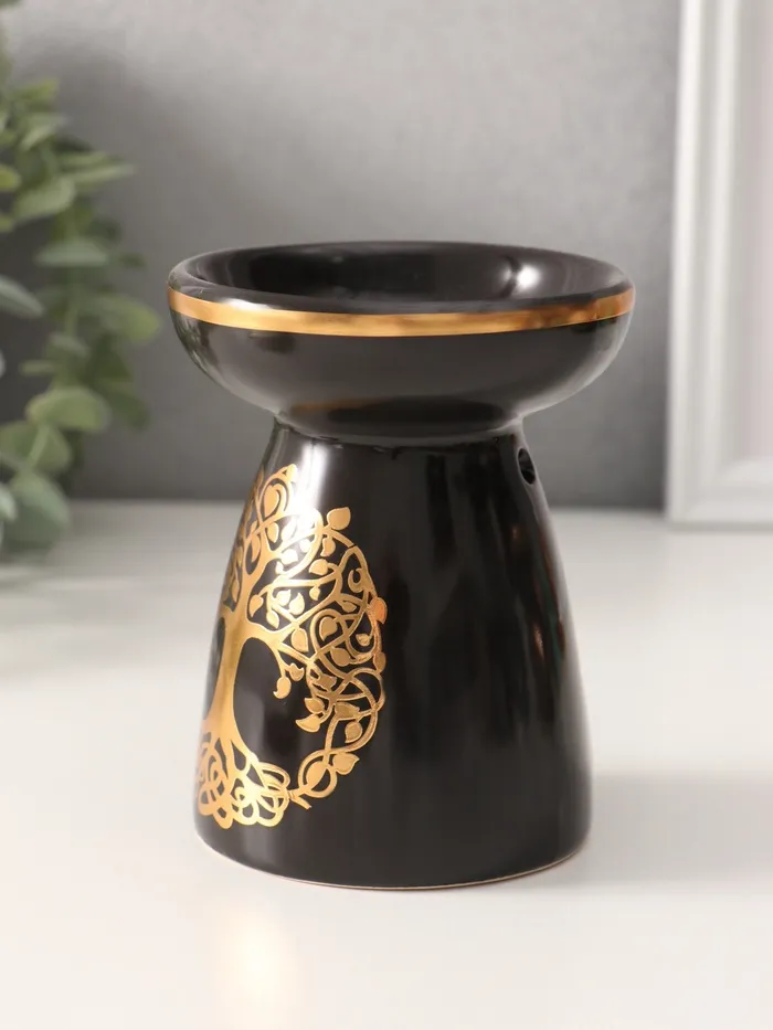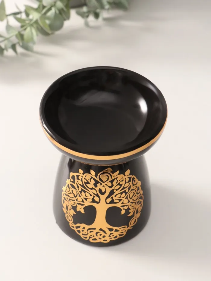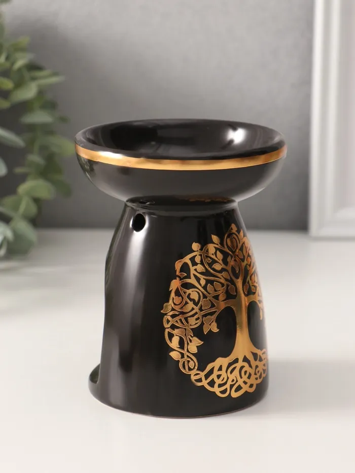 Аромалампа для эфирных масел «Древо жизни», керамика, чёрная с золотом, 9.3×9.3×11.8 см — Характеристики