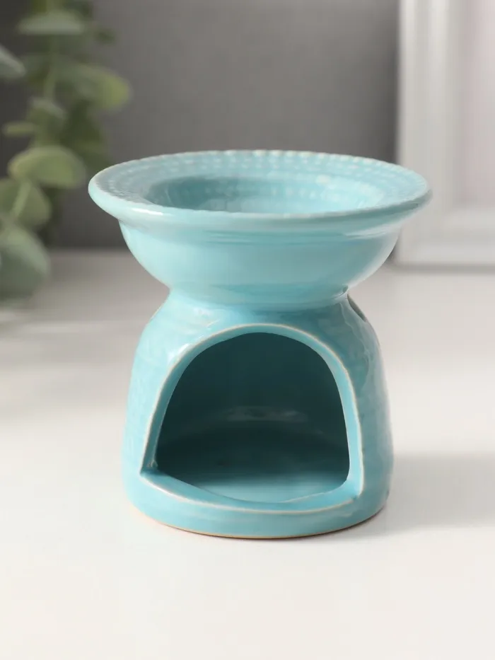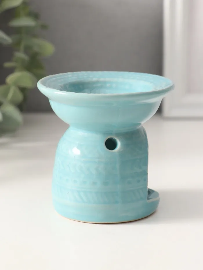 Аромалампа для эфирных масел «Геометрические узоры», керамика, нежно-голубая, 7.5×7.5×6.5 см — Характеристики