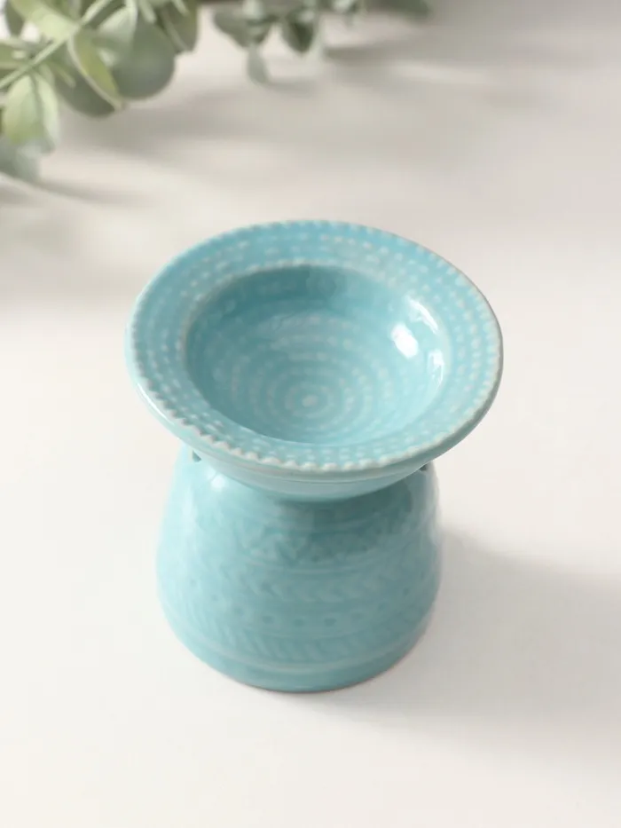 Аромалампа для эфирных масел «Геометрические узоры», керамика, нежно-голубая, 7.5×7.5×6.5 см