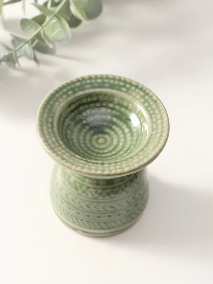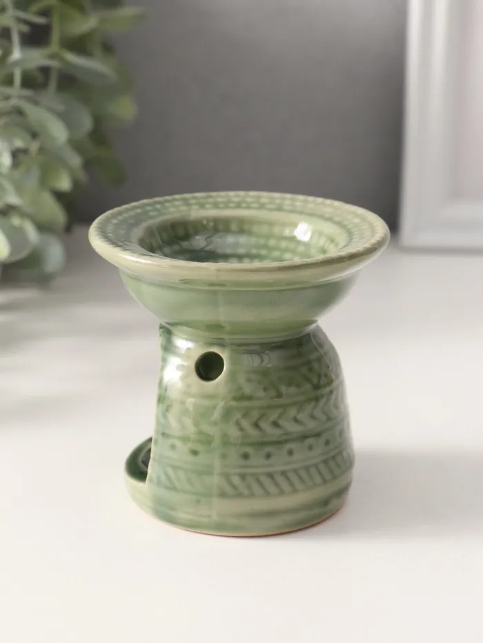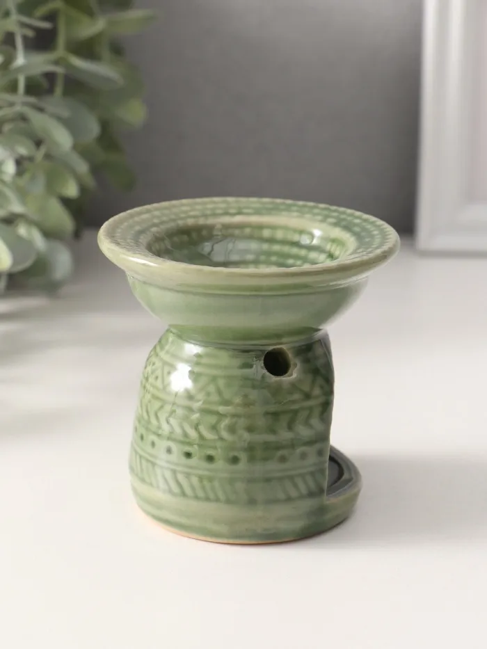 Аромалампа для эфирных масел «Геометрические узоры», керамика, оливковая, 7.5×7.5×6.5 см — Характеристики