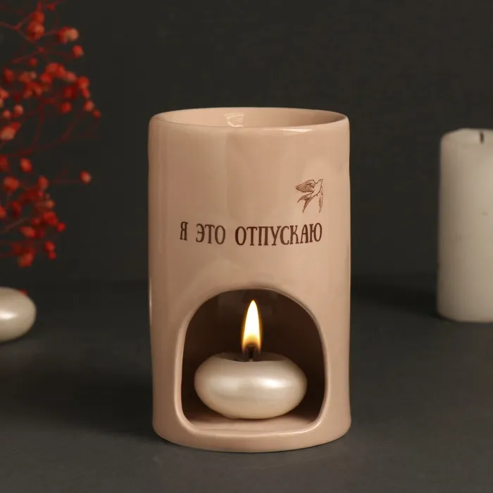 Аромалампа для эфирных масел «Я это отпускаю», керамика, бежевая, 7.2×7.2×11.6 см — Характеристики