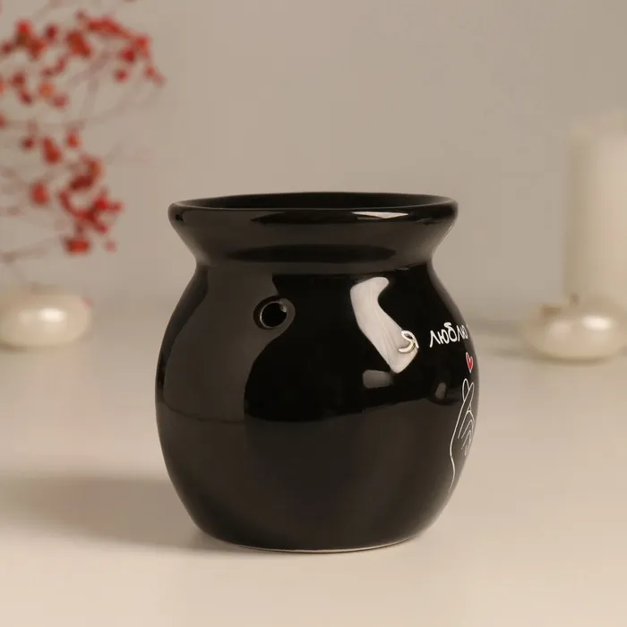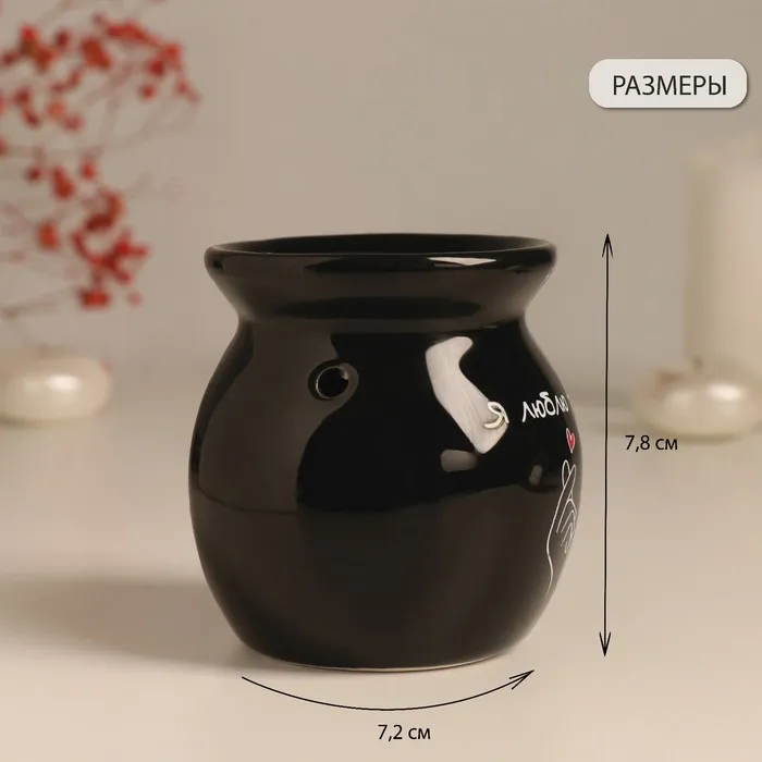 Аромалампа для эфирных масел «Я люблю себя», керамика, чёрная, 7.2×7.2×7.8 см — Характеристики