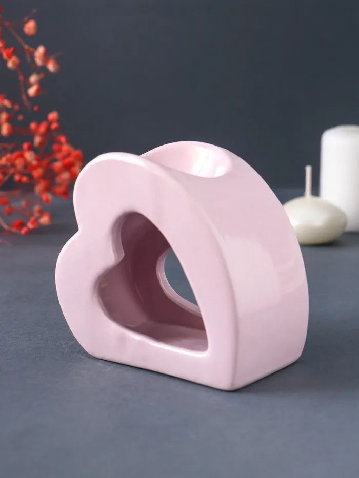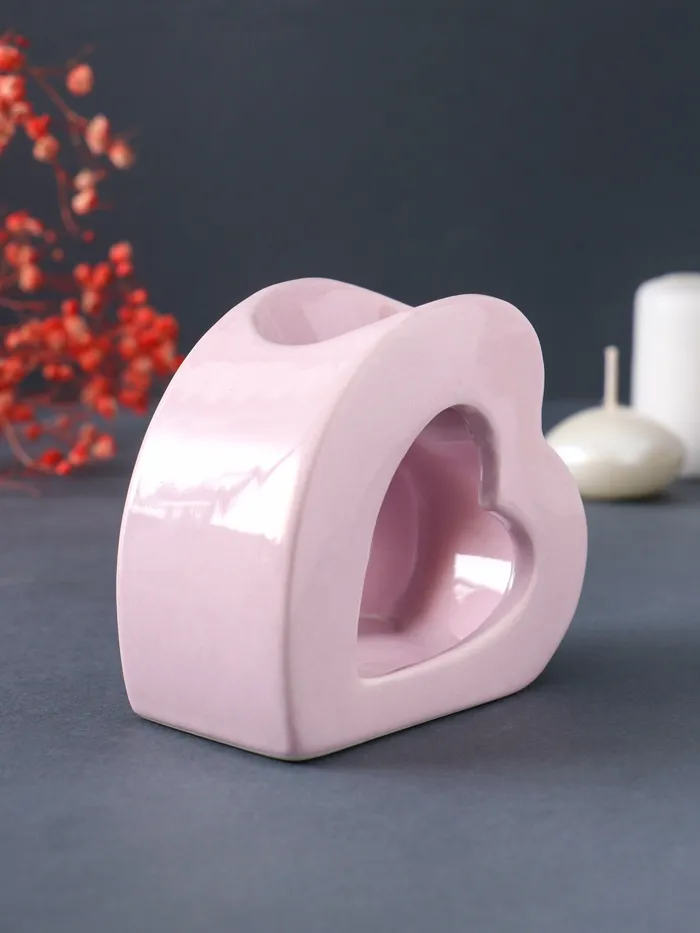Аромалампа для эфирных масел керамика «Сердце», сиреневая, 9×4.8×8 см