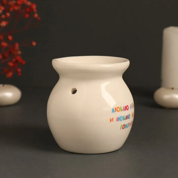 Аромалампа для эфирных масел «Люблю любить», керамика, белая, 7.2×7.2×7.8 см — Характеристики