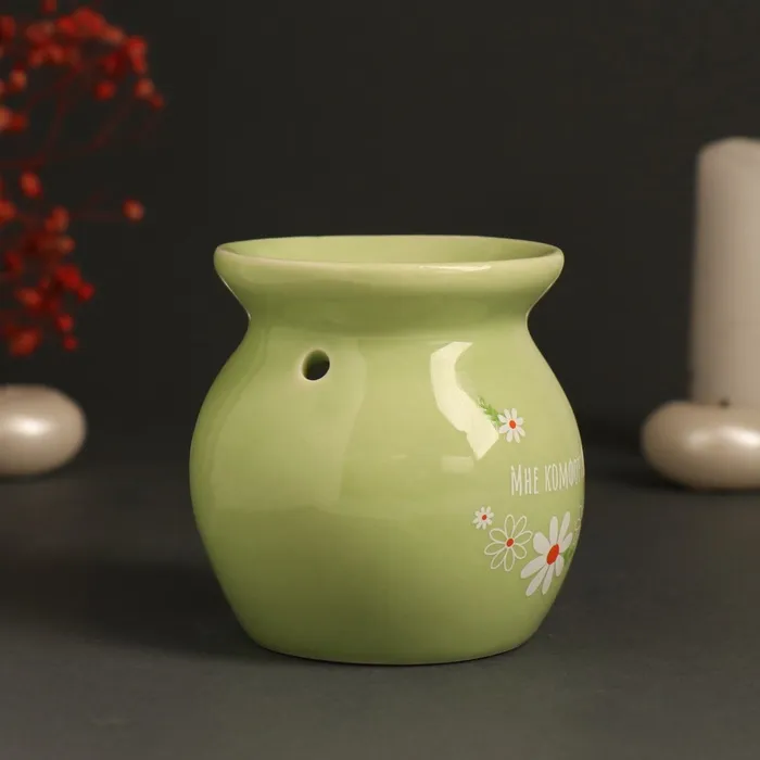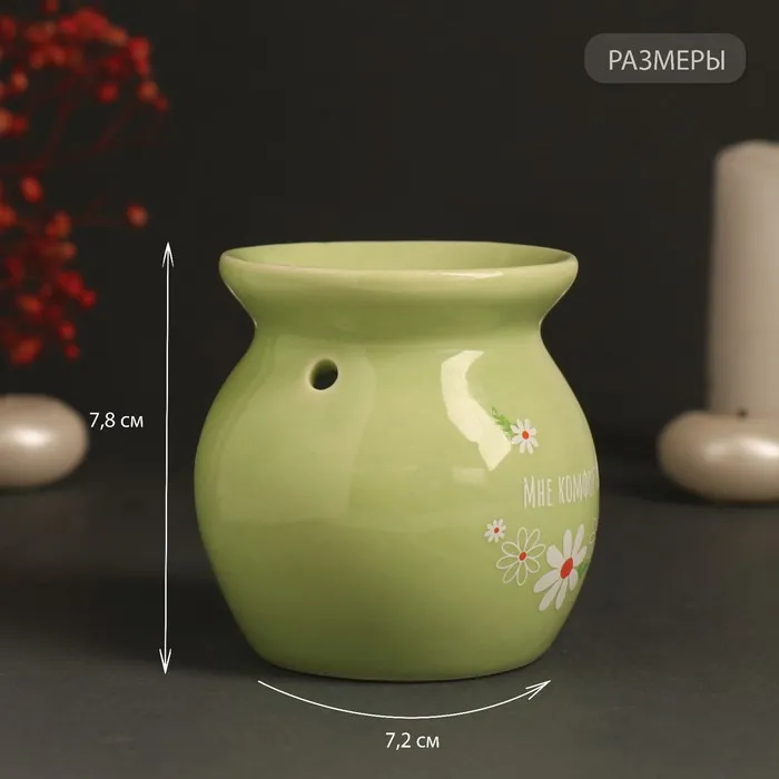 Аромалампа для эфирных масел «Мне комфортно», керамика, св. зелёная, 7.2×7.2×7.8 см — Характеристики