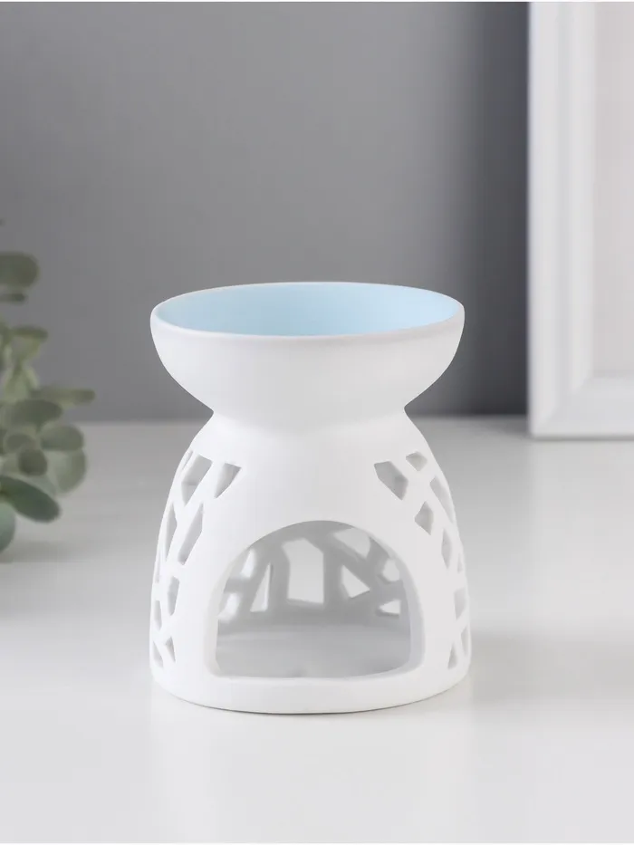 Аромалампа для эфирных масел «Необычная геометрия», керамика, белый, 8×8×9.3 см