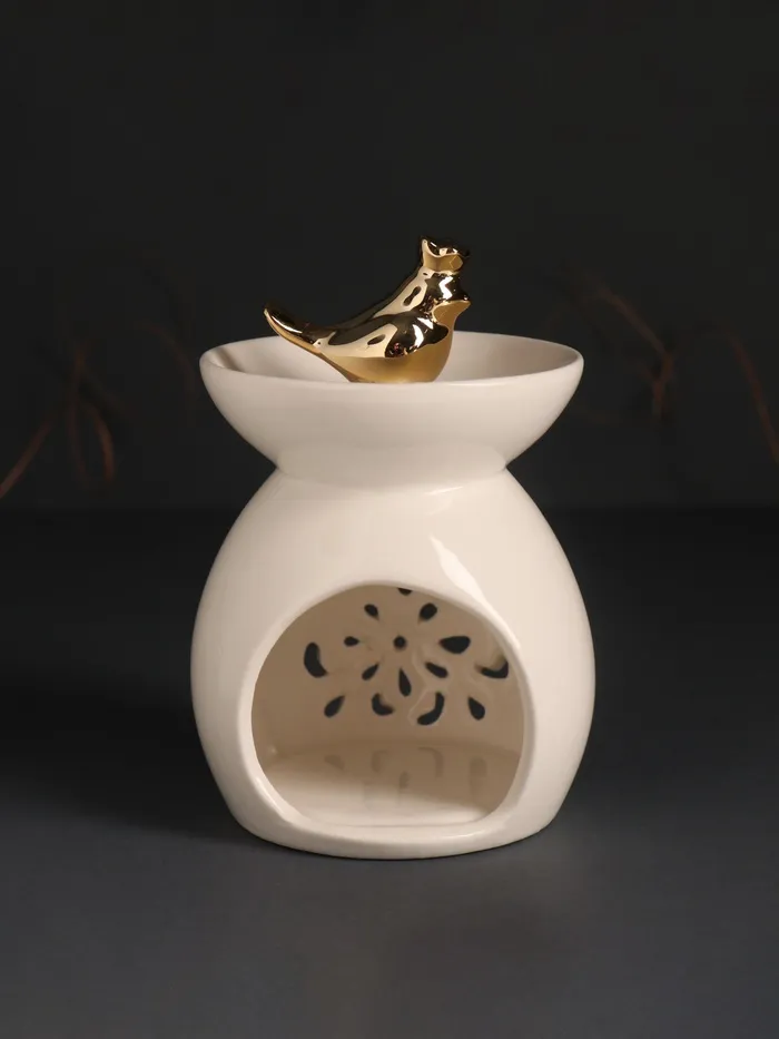 Аромалампа «Птичка в короне» поможет вам создать уютную и расслабляющую атмосферу в вашем доме. Её оригинальный дизайн и мягкий белый перламутровый цвет привнесут в ваш интерьер нотку элегантности и уюта. Керамика — это прочный и долговечный материал, который сохранит первоначальный вид аромалампы на долгие годы.