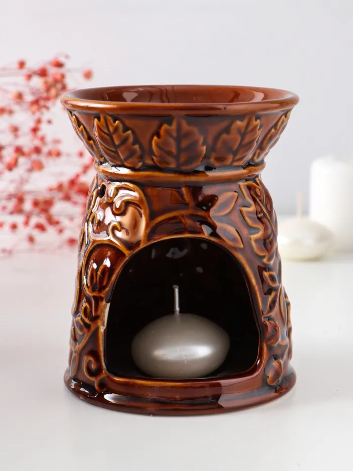 Аромалампа для эфирных масел «Растительный узор», керамика, карамель, 9.5×9.5×12 см — Характеристики