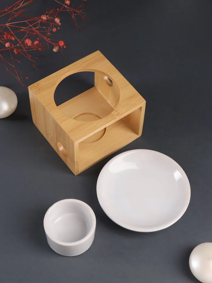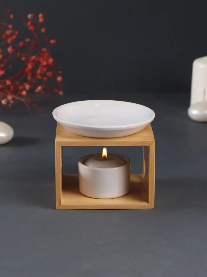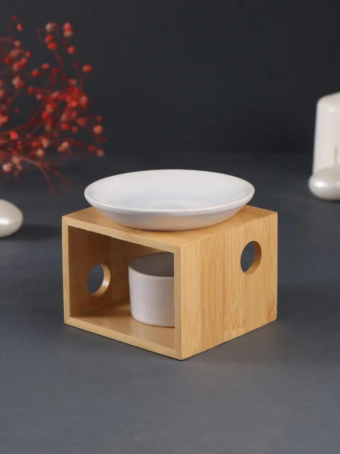 Откройте для себя элегантность и функциональность с этой стильной аромалампой, которая станет идеальным дополнением вашего интерьера. Изготовленная из керамики и бамбука, она сочетает в себе современный дизайн и натуральные материалы, что делает её не только красивой, но и экологически чистой. Ее размеры 9.8×9.8×8 см позволяют легко разместить её в любом уголке вашего дома.