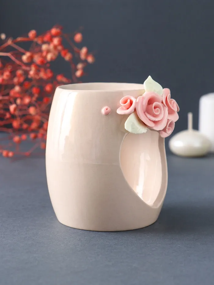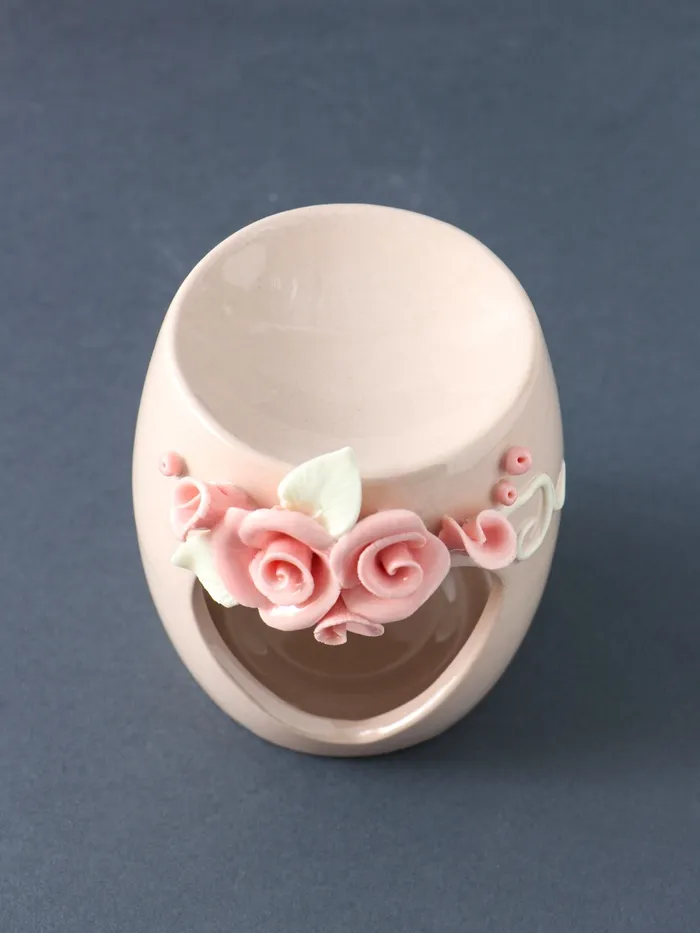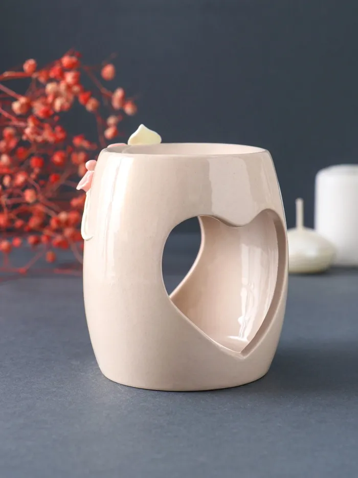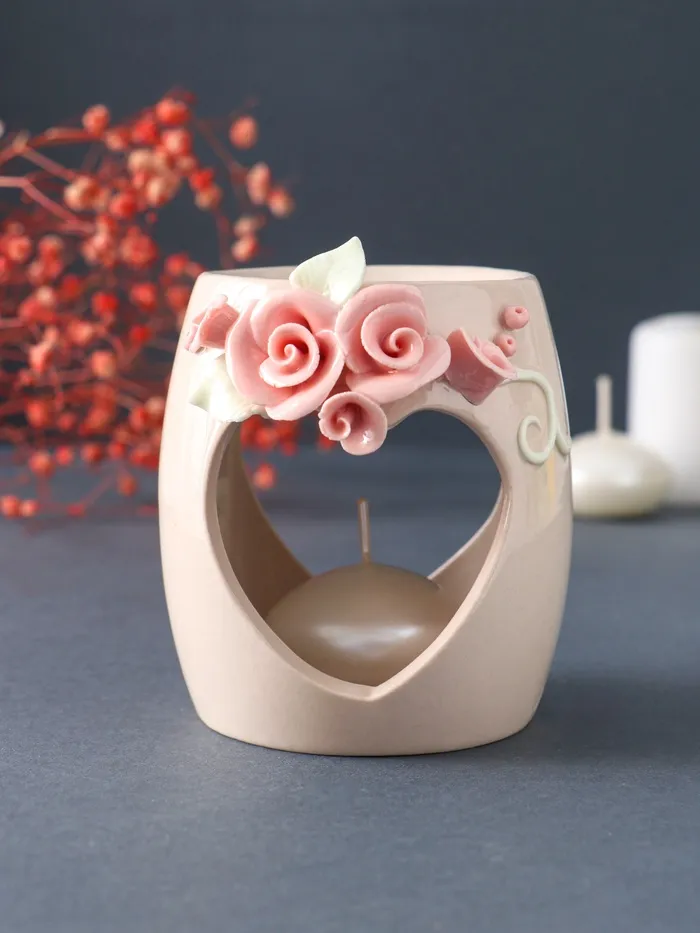 Аромалампа для эфирных масел «Сердце с розами», керамика, бежевая, 8×8×9 см — Характеристики