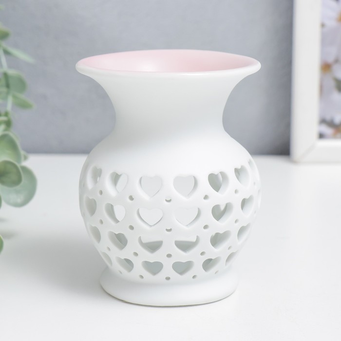 Эта керамическая аромалампа с узором из сердечек станет трогательным подарком для близкого человека или элегантным акцентом в вашем доме. Она мягко наполняет комнату любимыми ароматами, создавая атмосферу тепла и заботы.