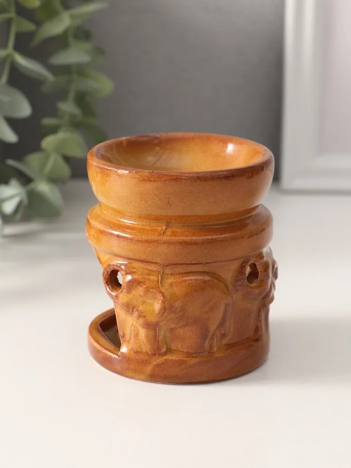 Аромалампа для эфирных масел «Слоны в саванне», керамика, корица, 7×7×7.8 см