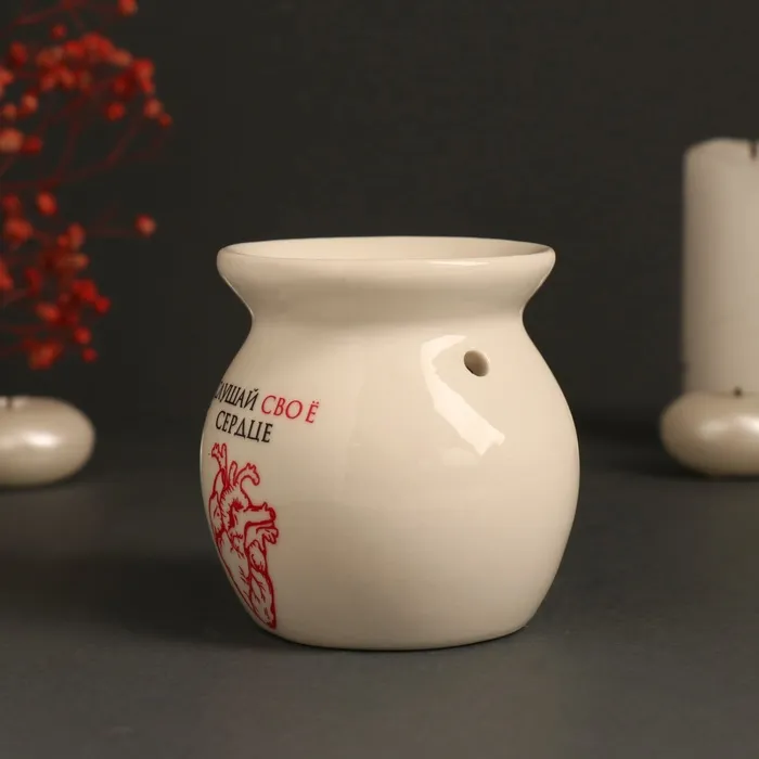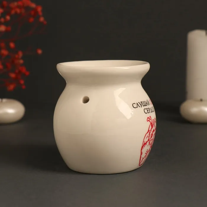 Аромалампа для эфирных масел «Слушай своё сердце», керамика, белая, 7.2×7.2×7.8 см — Характеристики
