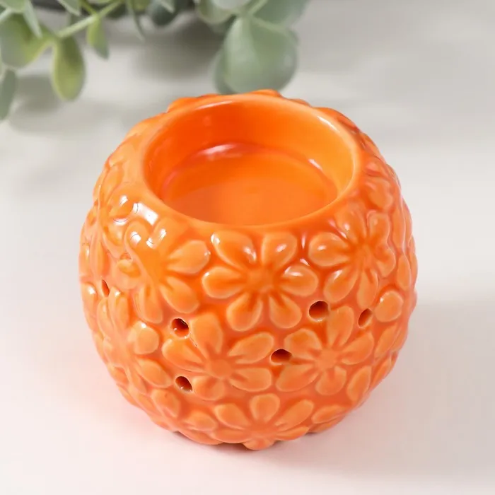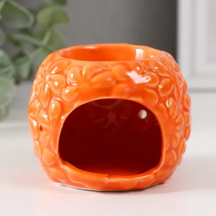 Аромалампа для эфирных масел «Цветочки», керамика, оранжевая, 7.5×7.5×7.5 см — Характеристики