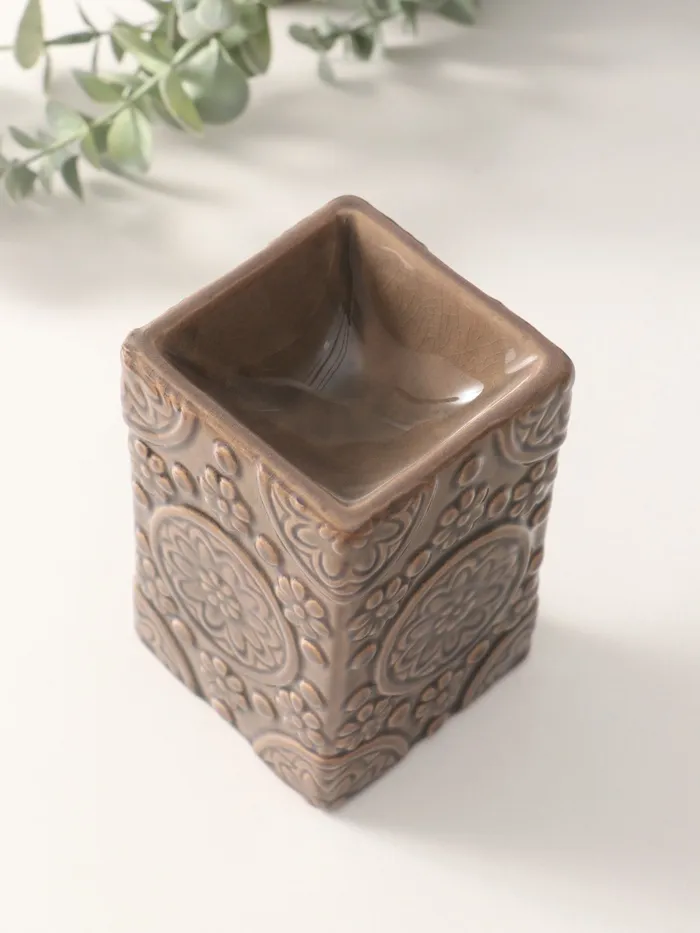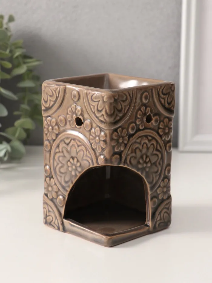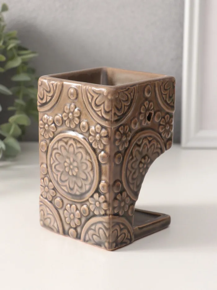 Аромалампа для эфирных масел «Цветочные узоры», керамика, т. бежевая, 7.7×7.7×12 см