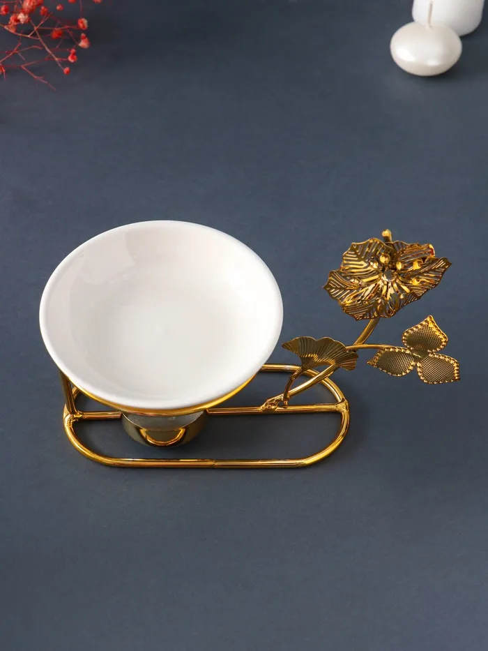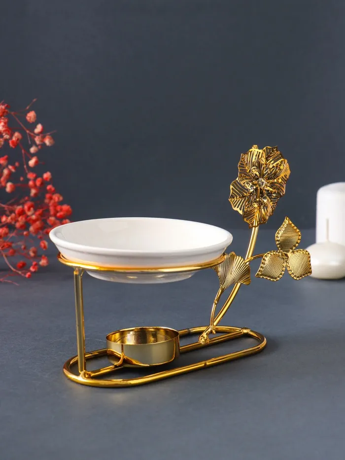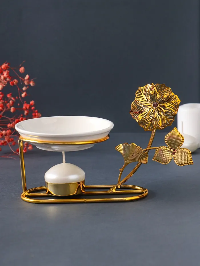 Аромалампа для эфирных масел «Золотой цветок», металл, керамика, 10×11.5×18 см — Характеристики