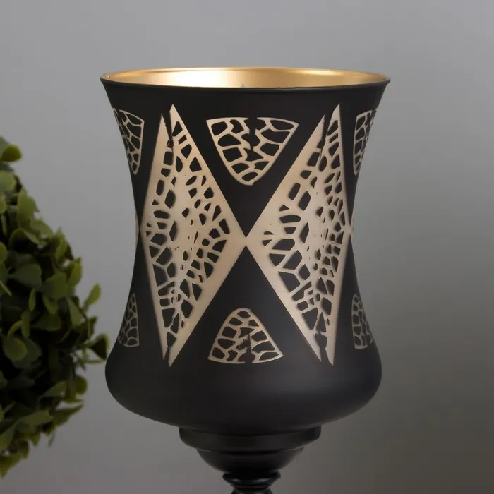 - Плафон выполнен в черных и золотых тонах, создавая стильный контраст и добавляя роскошь в интерьер.