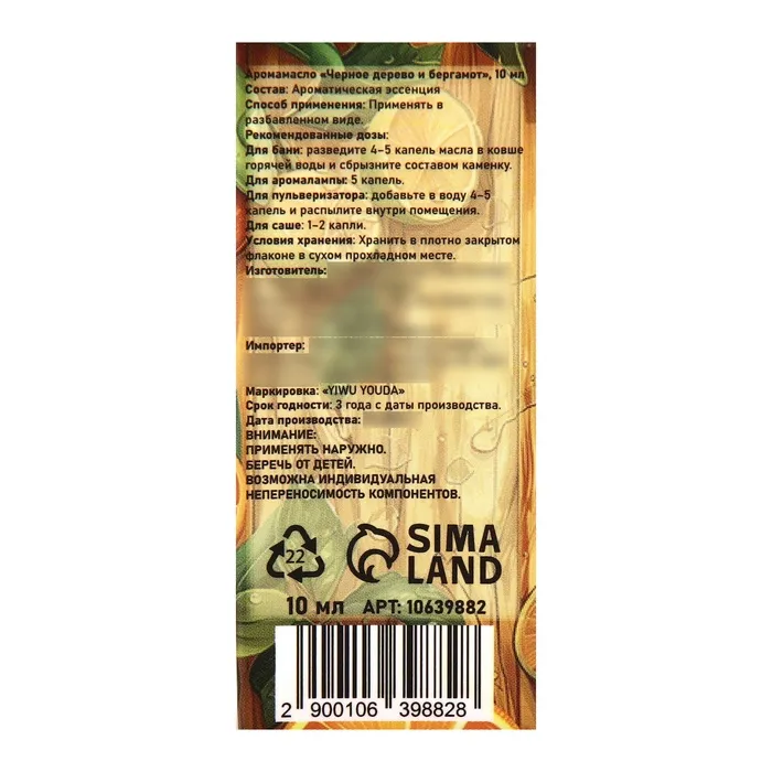 Аромамасло Чёрное дерево и Бергамот 10 мл — Характеристики
