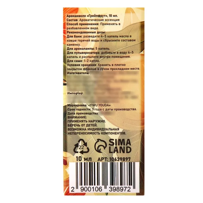 Аромамасло Грейпфрут 10 мл — Характеристики