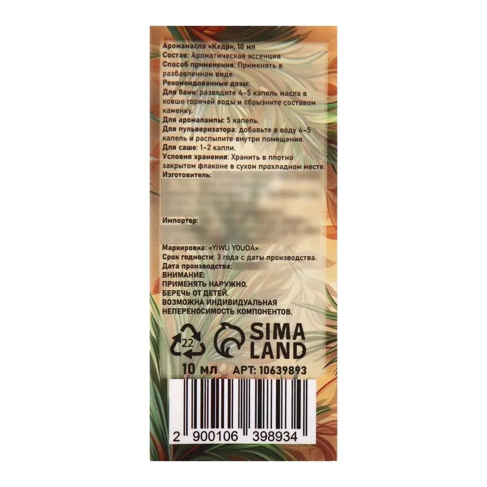 Аромамасло Кедр 10 мл — Характеристики