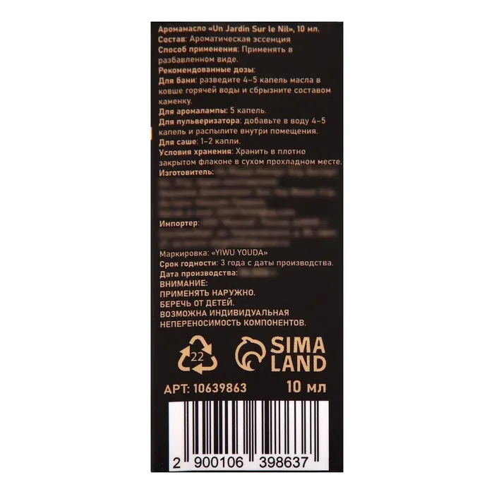 Аромамасло Un Jardin Sur le Nil подходит для использования в любое время года, но особенно хорошо будет звучать летом, наполняя пространство солнечной энергией и свежестью. Этот аромат станет отличным подарком для любителей экзотических и ярких композиций.