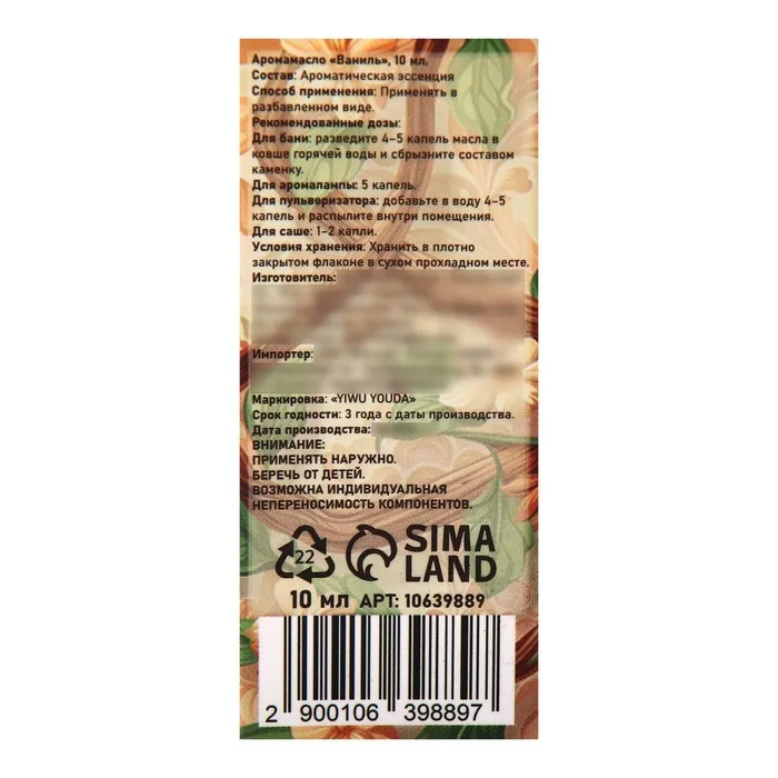 Аромамасло Ваниль 10 мл — Характеристики
