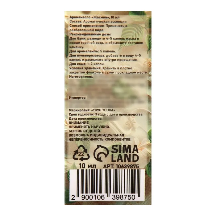 Аромамасло Жасмин 10 мл — Характеристики