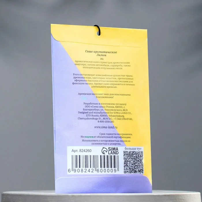 Аромасаше "Лимон", 10 г, "Богатство Аромата" — Характеристики