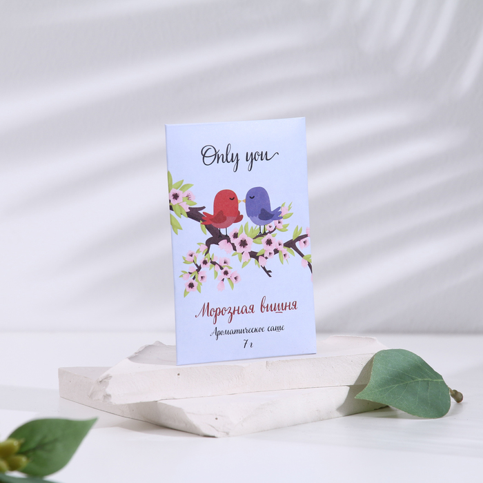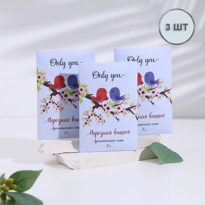 Аромасаше "Only You" – это набор из трёх уникальных саше, наполненных чарующим ароматом морозной вишни. Каждый мешочек весом 7 грамм, оформленный в стильном тканевом чехле размером 7х10,5 см, создаёт атмосферу зимнего уюта и свежести.