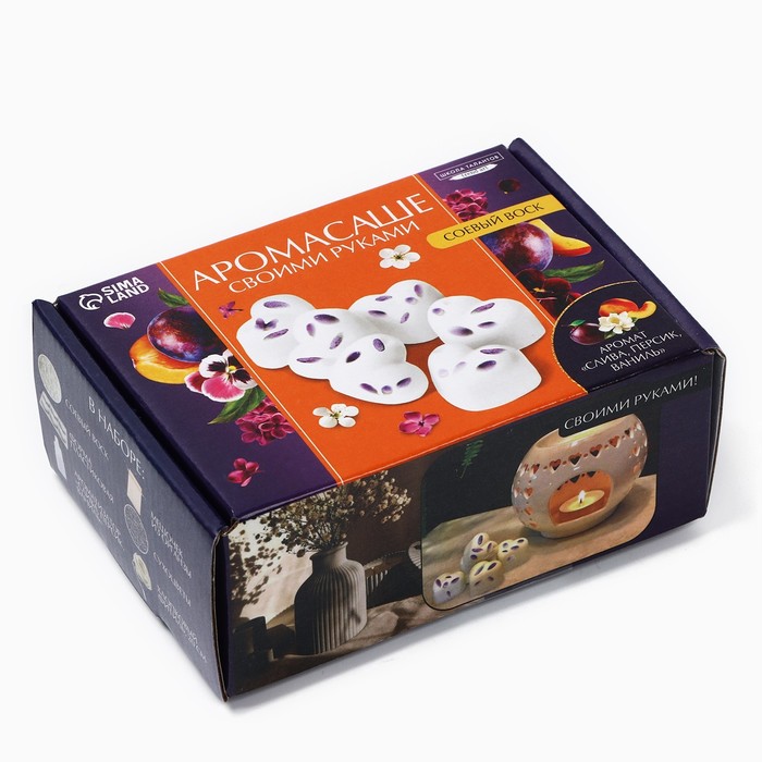 Соевый воскПластиковая формаАроматизатор «Слива Персик Ваниль»Мешочек из органзыСухоцветыХлопковый фитиль 20 смКак сделать аромасаше: