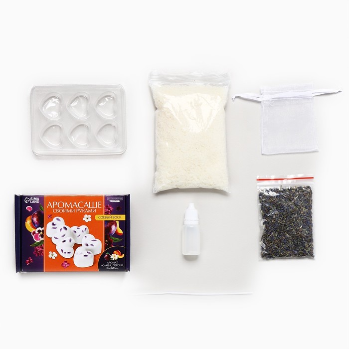 Аромасаше своими руками. Набор для создания ароматической фигурки из соевого воска «Сердечки с сухоцветами» — Характеристики