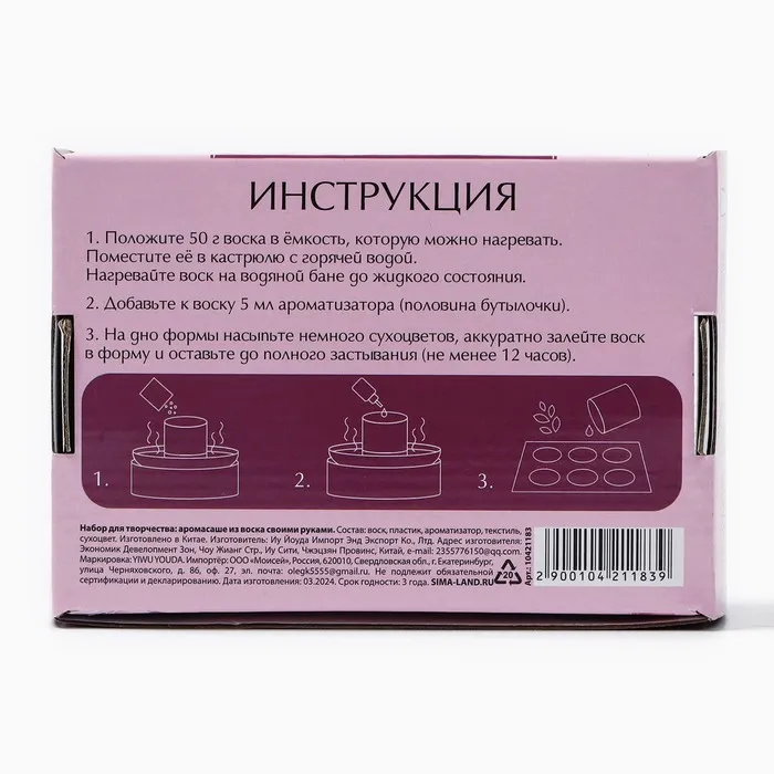 Аромасаше своими руками. Набор для создания ароматической фигурки из соевого воска «Цветы с сухоцветами» — Характеристики