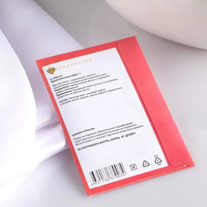 Лёгкое и компактное саше весом 7 г и размером 7×10.5 см станет незаменимым элементом ароматизации в любом уголке вашего дома или личных вещей.