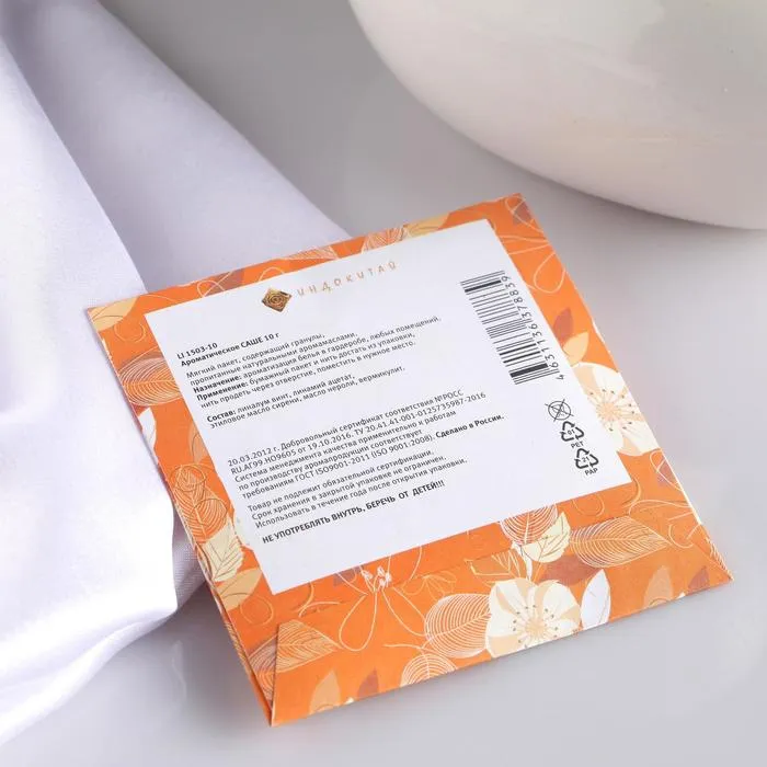 Аромасаше "Запахи удовольствия", ваниль-апельсин, вес 10 г, размер 10×10.5 см