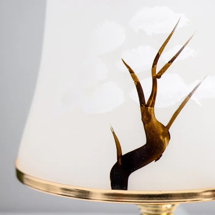 - Золотое основание добавляет нотку роскоши и прекрасно сочетается с нестандартной формой стеклянных плафонов.