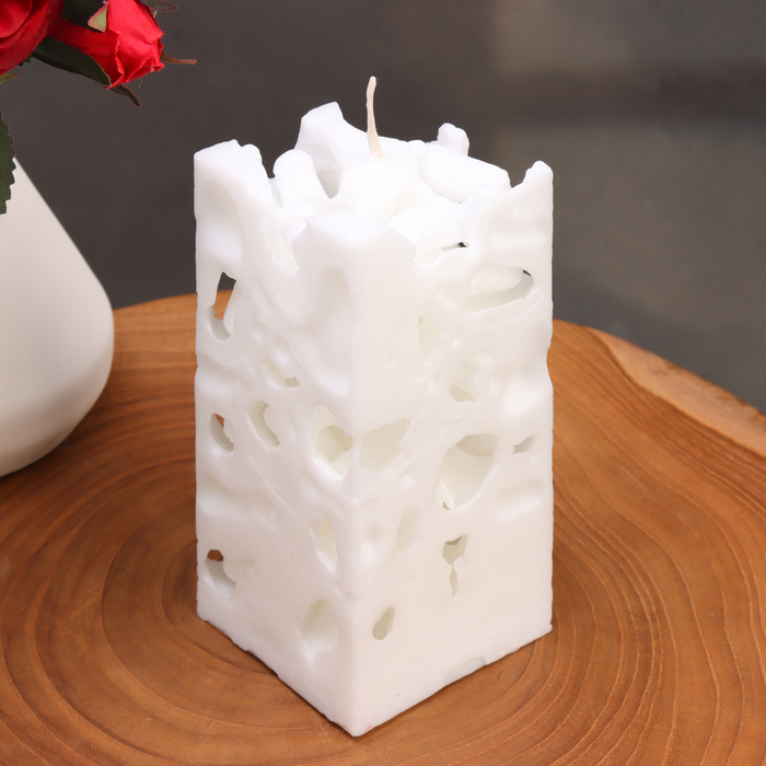 Ароматическая свеча декоративная «Ажурная», белый, 6×6×12 см, чистый хлопок