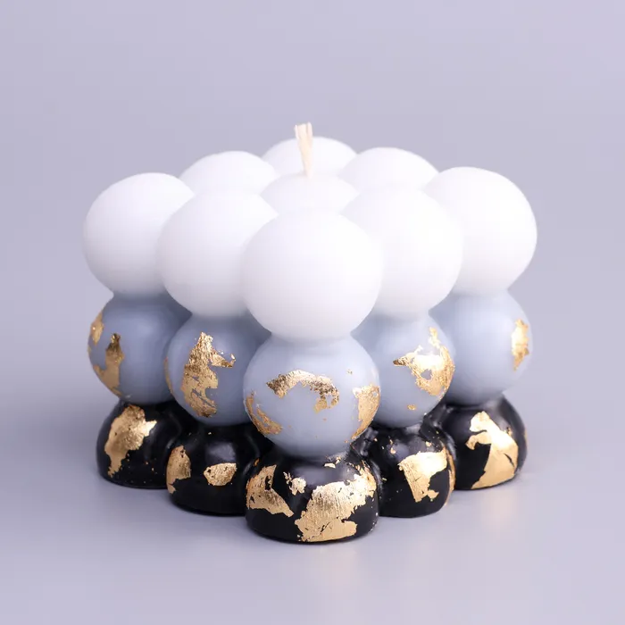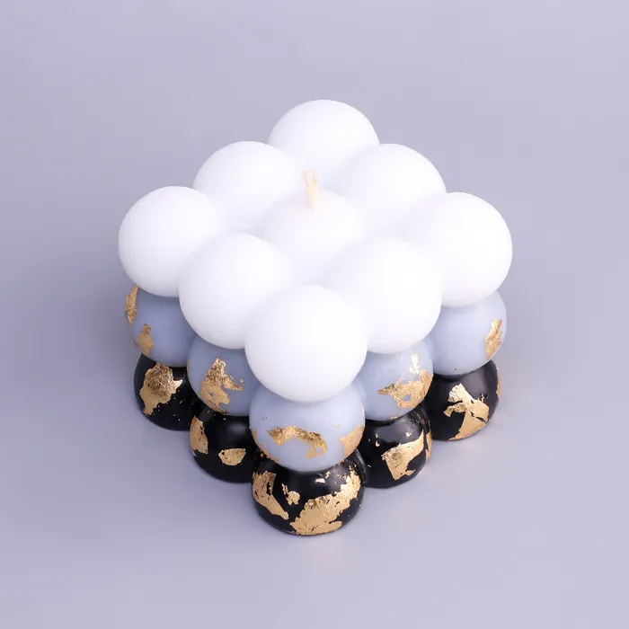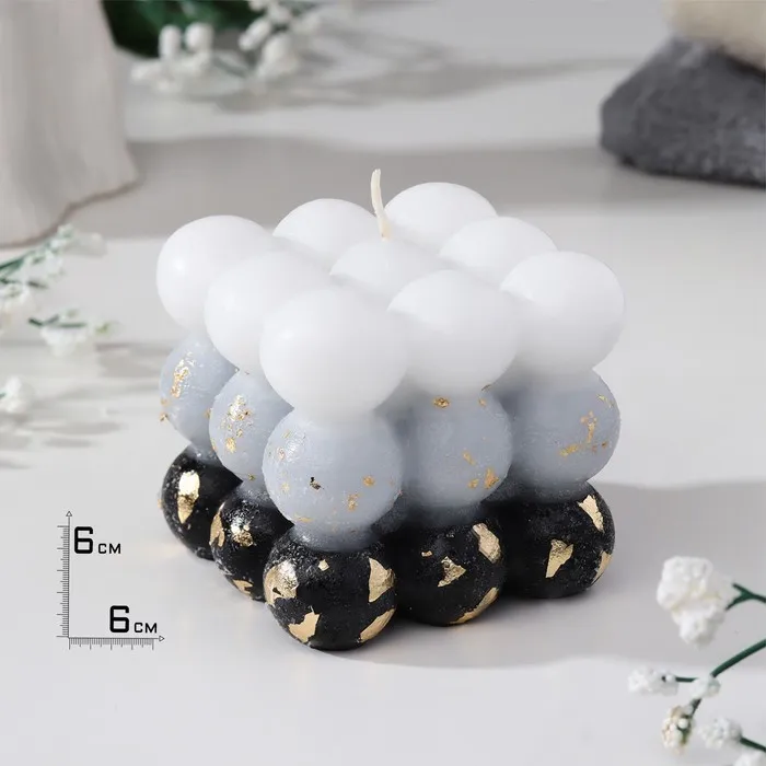 Ароматическая свеча декоративная с поталью «Бабл куб», 6 см, бело-чёрная, кожа и печенье — Характеристики