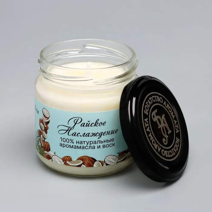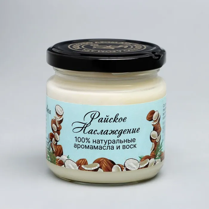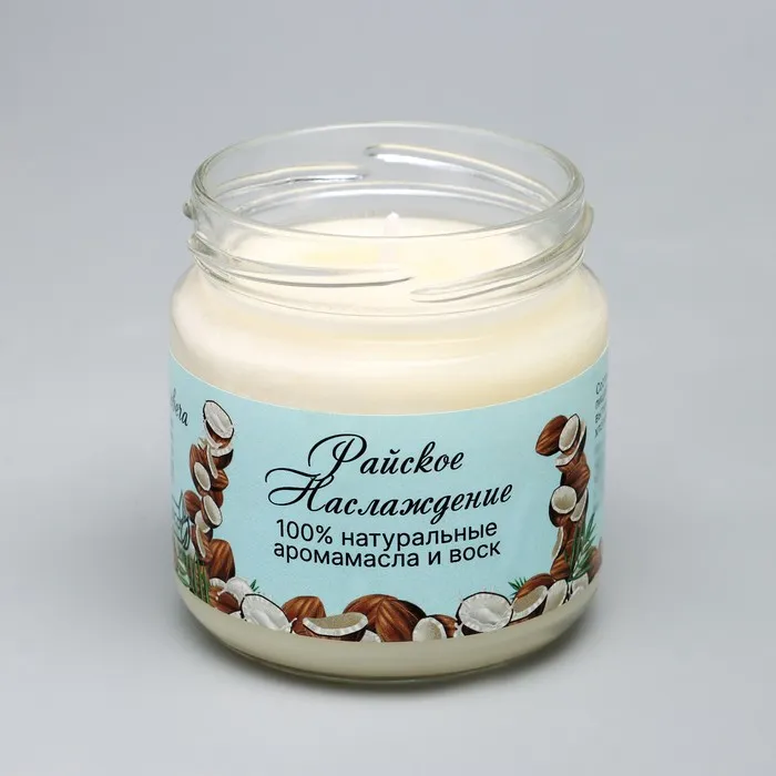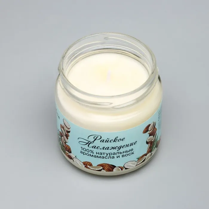 Ароматическая свеча натуральная «Райское наслаждение», эко, 7×7.5 см, 14 ч, кокос — Характеристики