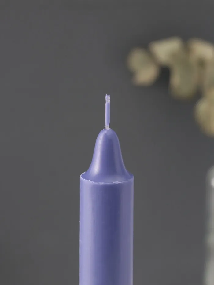 Эта свеча, высотой 21 см и диаметром 2,4 см, изготовлена из качественного парафина, что обеспечивает её равномерное горение и долговечность. Её форма — цилиндр с конусом — добавляет изысканности, а сиреневый цвет гармонично вписывается в любой интерьер. Аромат лаванды, который наполняет комнату при горении, создаёт атмосферу уюта и спокойствия.