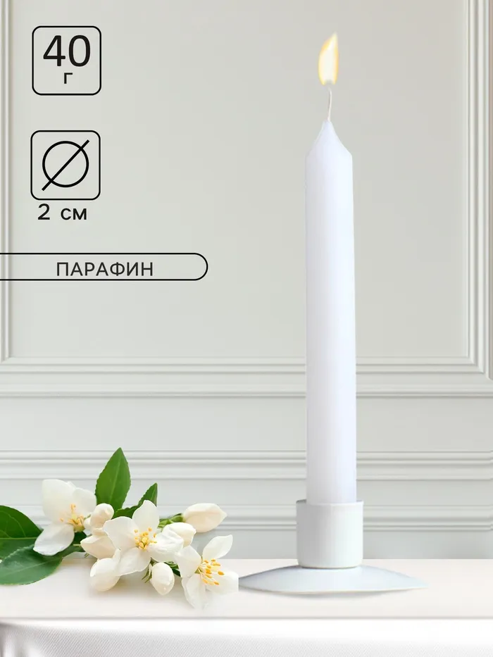 Эта свеча, высотой 17 см и диаметром 2 см, изготовлена из качественного парафина, что обеспечивает её равномерное горение и долговечность. Её цилиндрическая форма и классический дизайн делают её универсальным аксессуаром для любого интерьера. Аромат жасмина, который наполняет комнату при горении, добавит вашему дому свежести и лёгкости.