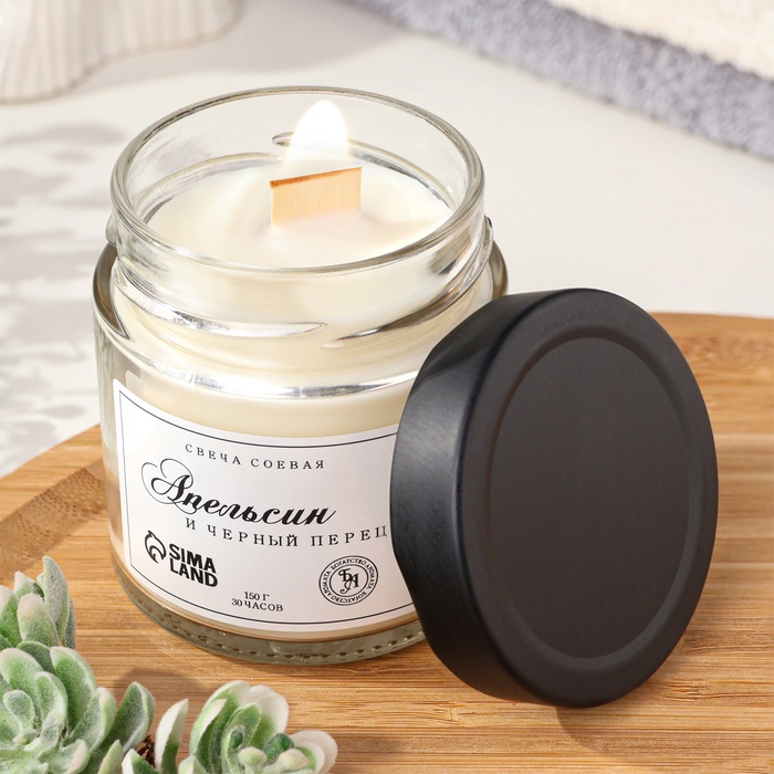 Свеча ароматическая из соевого воска в банке, 150 г, апельсин и черный перец