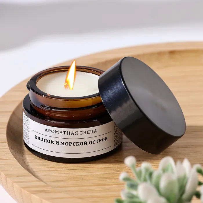 Свеча ароматическая в банке "Хлопок и морской остров", соевый воск, 12 г