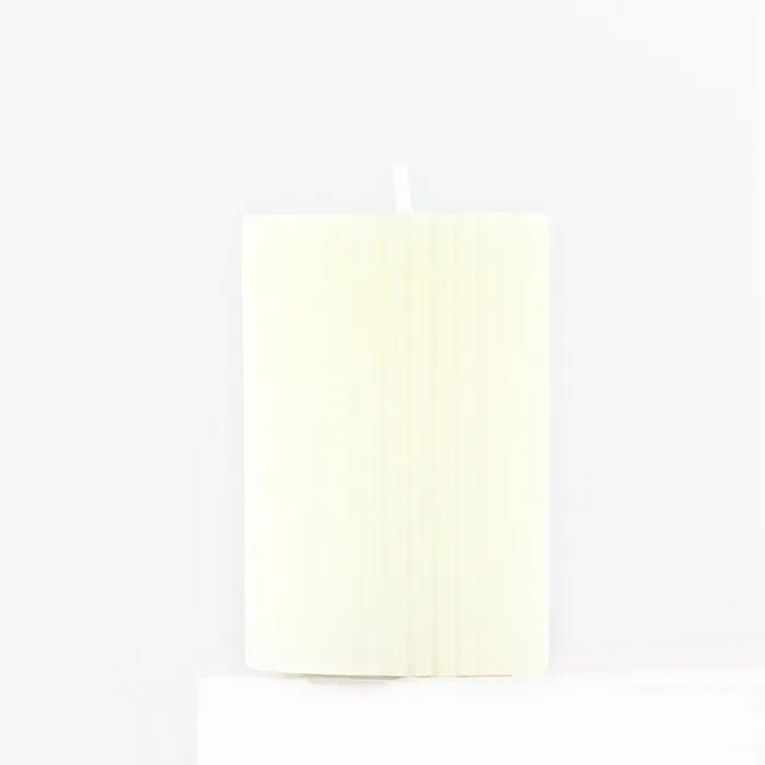 Выполнена в форме цилиндра с рельефной поверхностью, свеча будет отлично смотреться на праздничном столе.