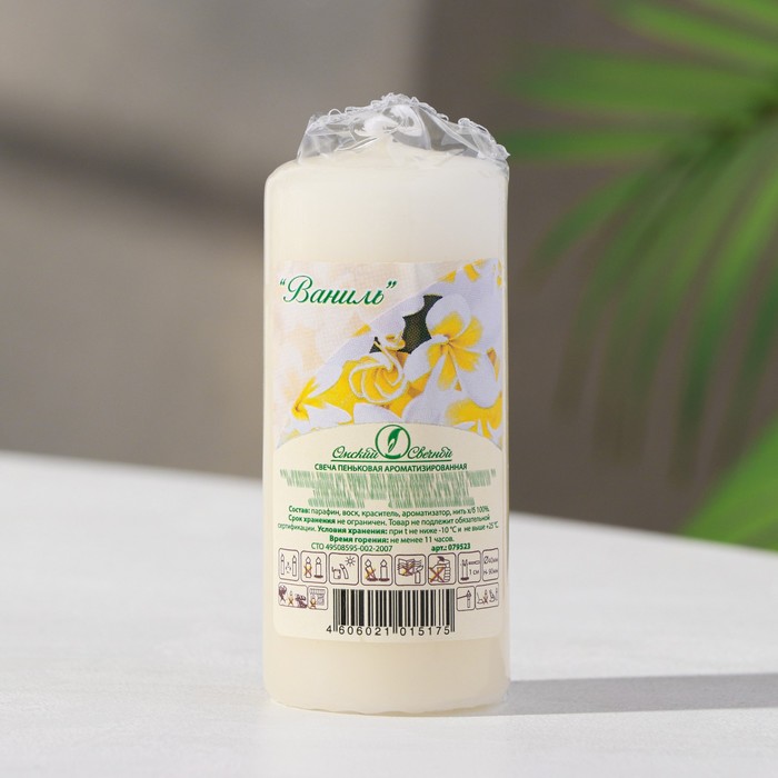 Ароматическая свеча-цилиндр «Ваниль», 4×9 см, 11 ч, 88 г, бежевая — Характеристики