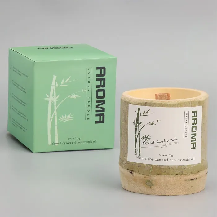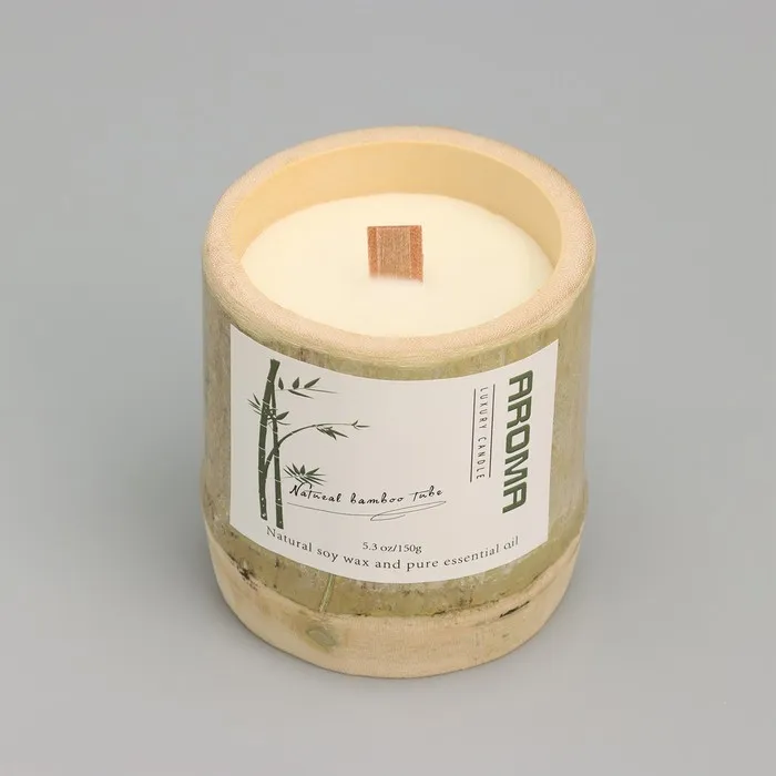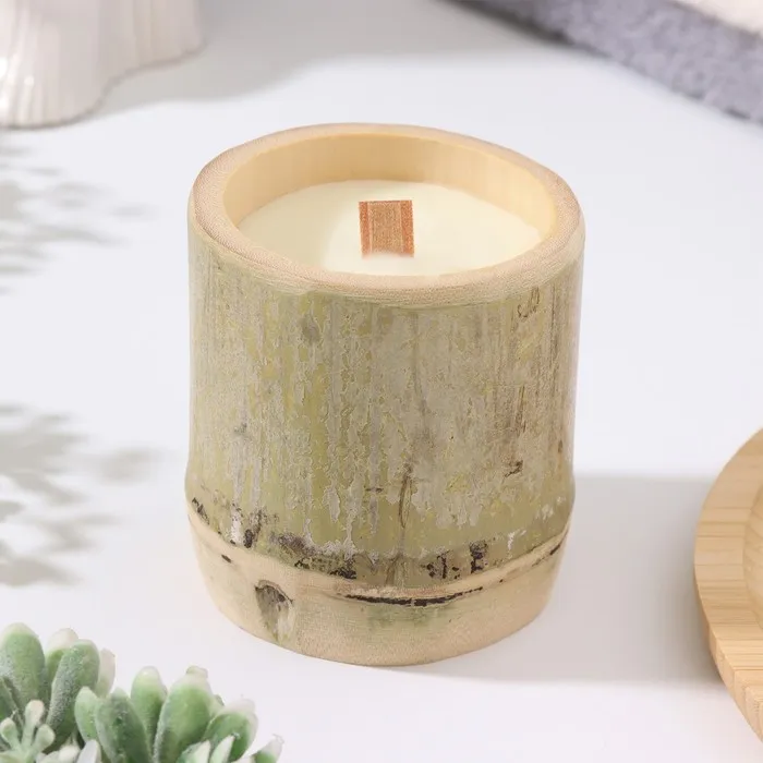 Ароматическая свеча в стакане из бамбука «Бамбуковый ствол», соевый воск, 25 ч, 150 г, в коробке, 8.5×8 см