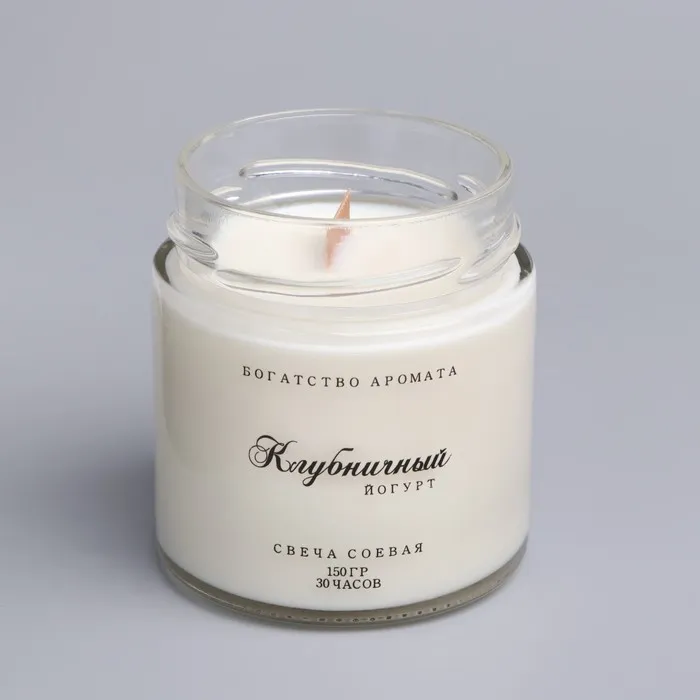 Ароматическая свеча в банке, 150 г, из соевого воска, деревянный фитиль, клубничный йогурт — Характеристики