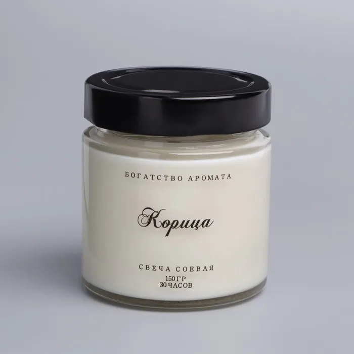 Ароматическая свеча в банке, 150 г, из соевого воска, деревянный фитиль, корица — Характеристики