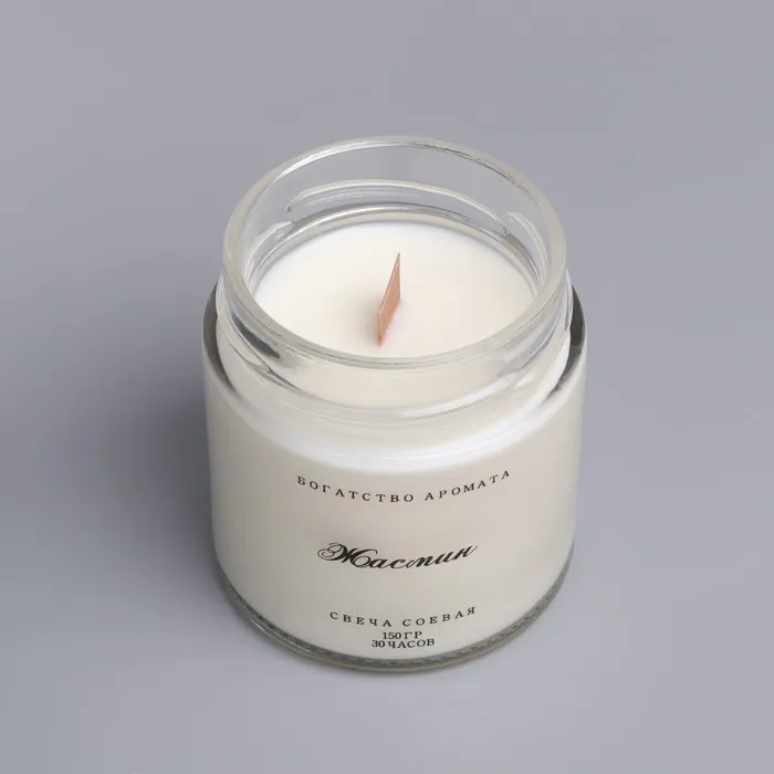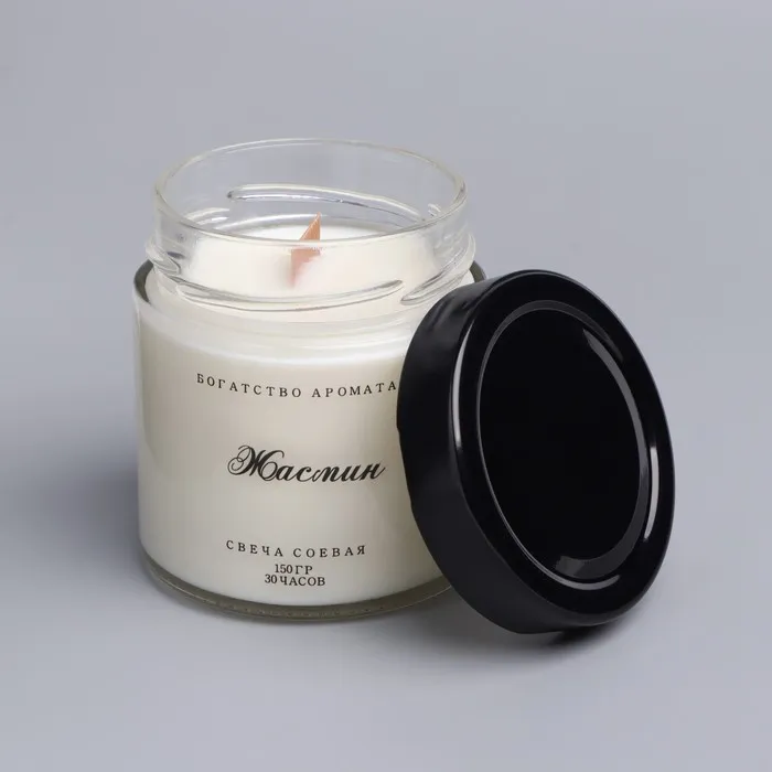 Ароматическая свеча в банке, 150 г, из соевого воска, деревянный фитиль, жасмин — Характеристики